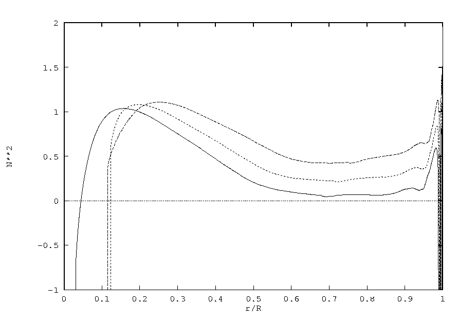 compared with Brunt-Vaisala frequencies for different post-ms evolutive phases of a 1.8MO star